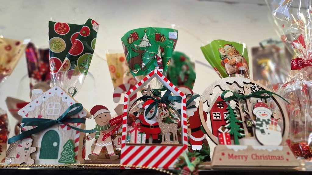 Εκτός από γλυκά στο ζαχαροπλαστείο ΧΡΙΣΤΟΔΟΥΛΟΣ βρίσκεται έξυπνα δωράκια με γιορταστικές φιγούρες με γλυκά που ξετρελαίνουν ατα παιδιά.
